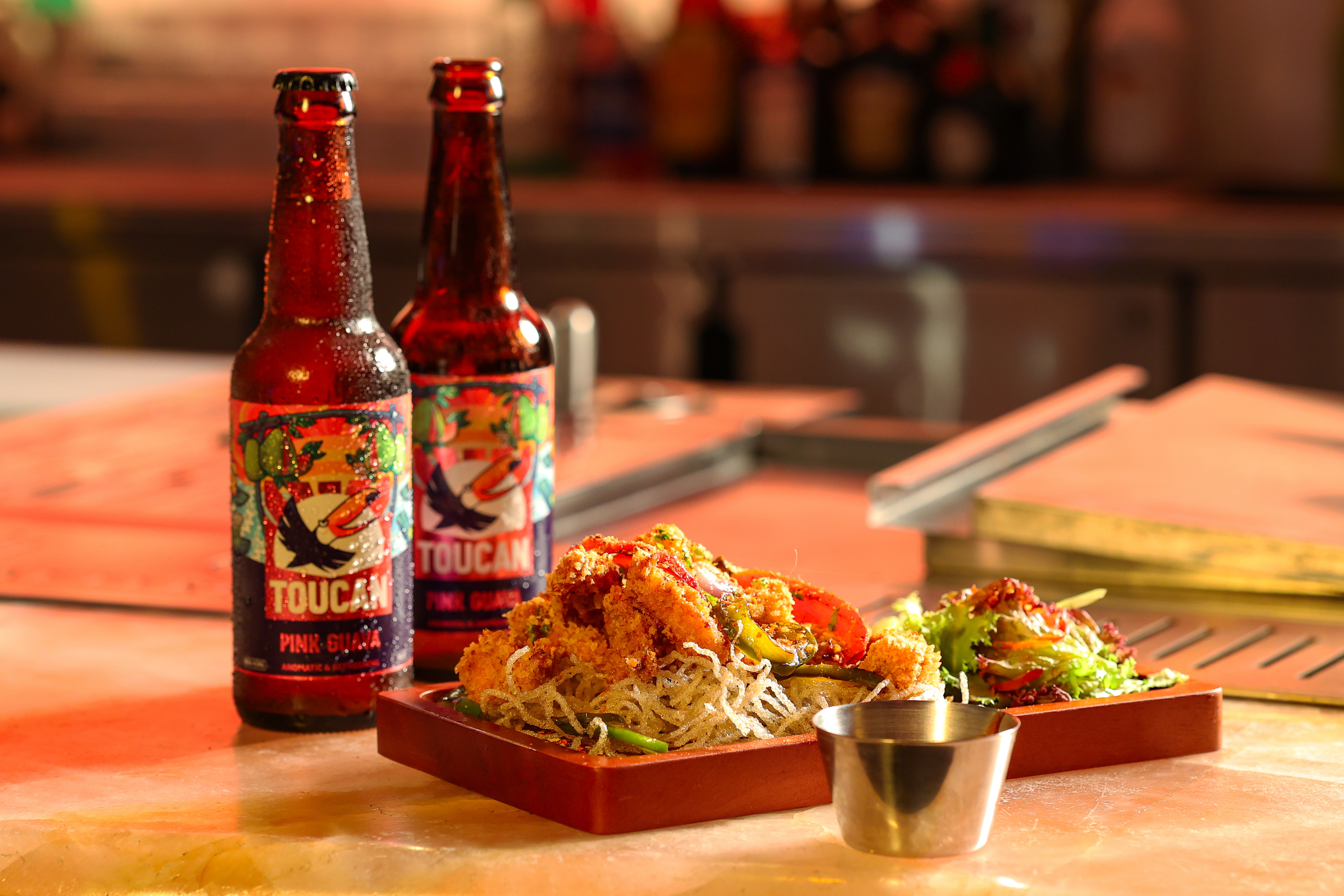 - Crispy Salted Cartilage + 2 chai Pink Guava: Sụn gà giòn tan, mằn mặn, nhâm nhi cùng bia Pink Guava ngọt thanh, thơm nức mùi ổi hồng – món này như được sinh ra để hội chị em vừa ăn vừa “tám”.