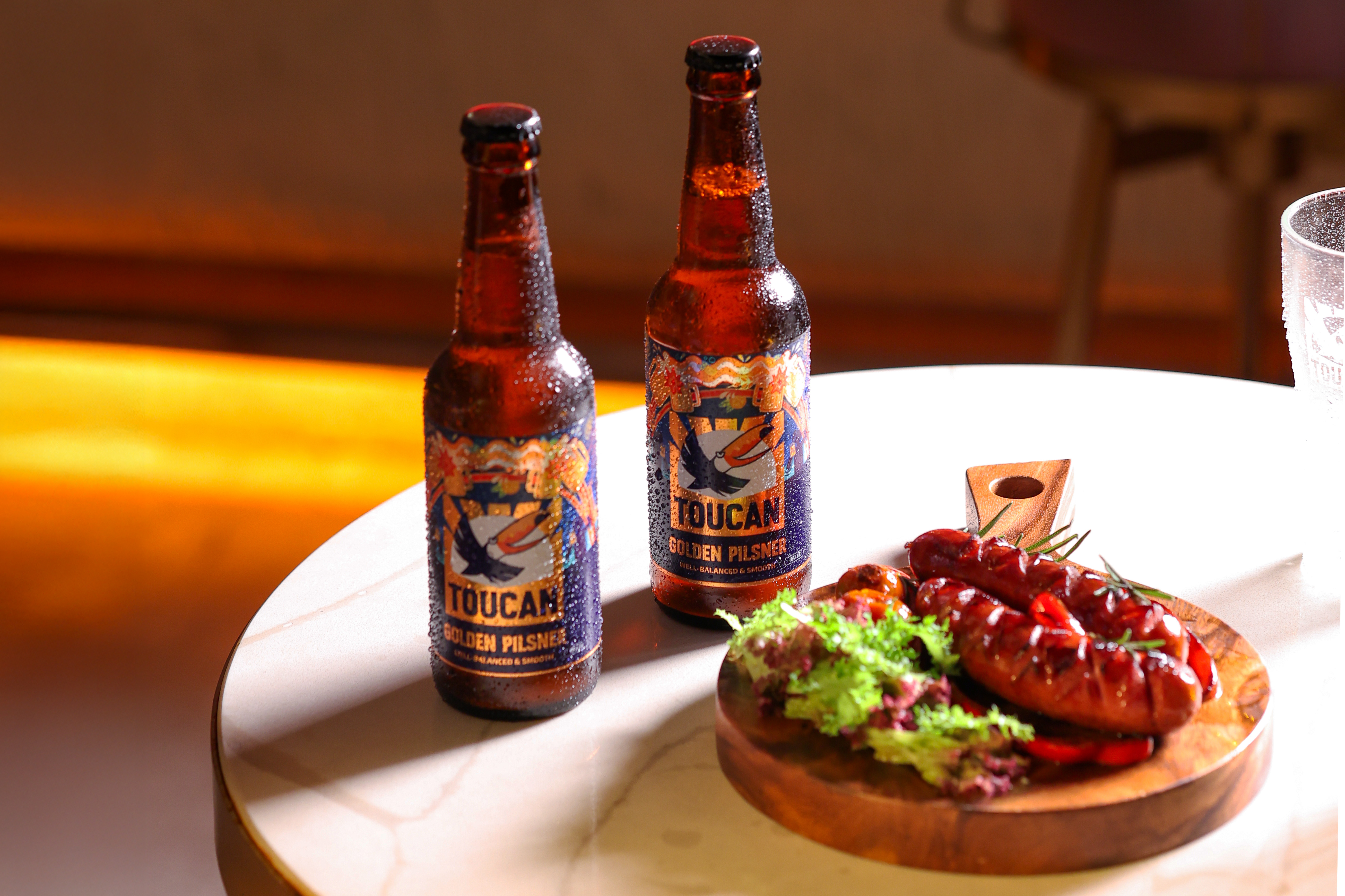 - BBQ Grilled Sausage Plate + 2 chai Golden Pilsner: Xúc xích nướng thơm lừng, nóng hổi, kết hợp với bia Golden Pilsner mát lạnh thơm mùi mật ong, sảng khoái như một cái chạm ly đầy hào hứng.