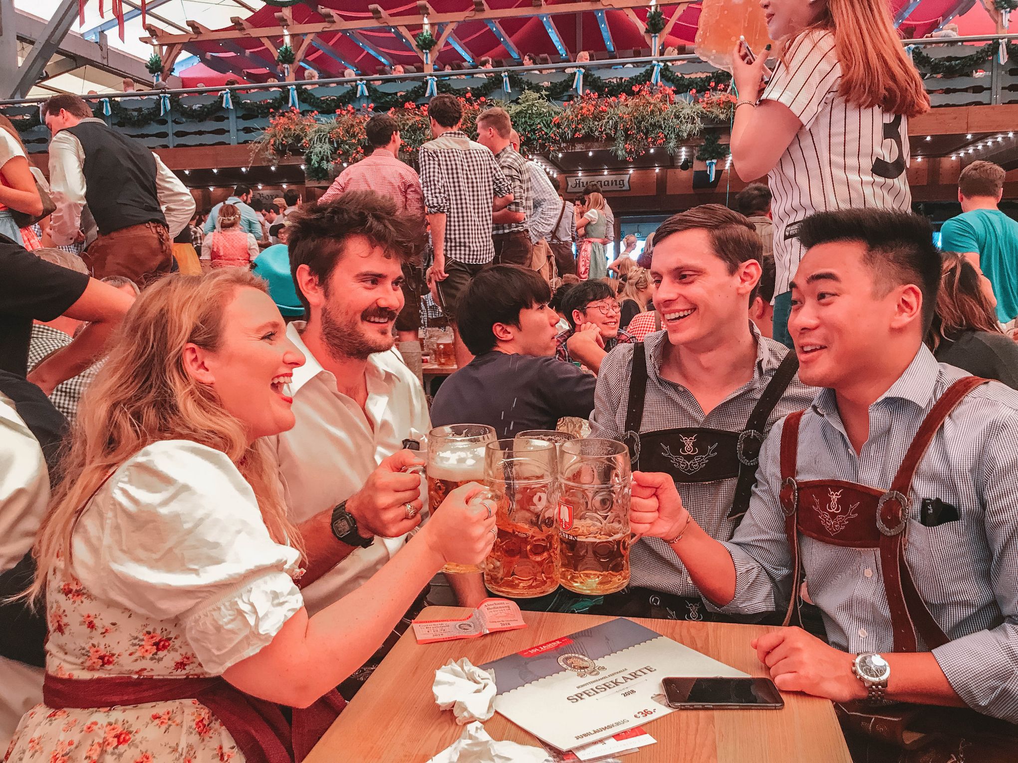 Hãy tưởng tượng: bạn ngồi trong một lều bia khổng lồ, xung quanh là hàng nghìn người đến từ khắp thế giới. Trước mặt là ly bia 1 lít vàng óng, lạnh toát, bọt trắng tràn miệng ly. Bạn nâng ly lên, hô “Prost!”, và cùng lúc đó hàng trăm ly khác cũng vang lên – tiếng chạm ly dồn dập, tiếng hò reo rộn rã như một làn sóng cuốn đi tất cả.